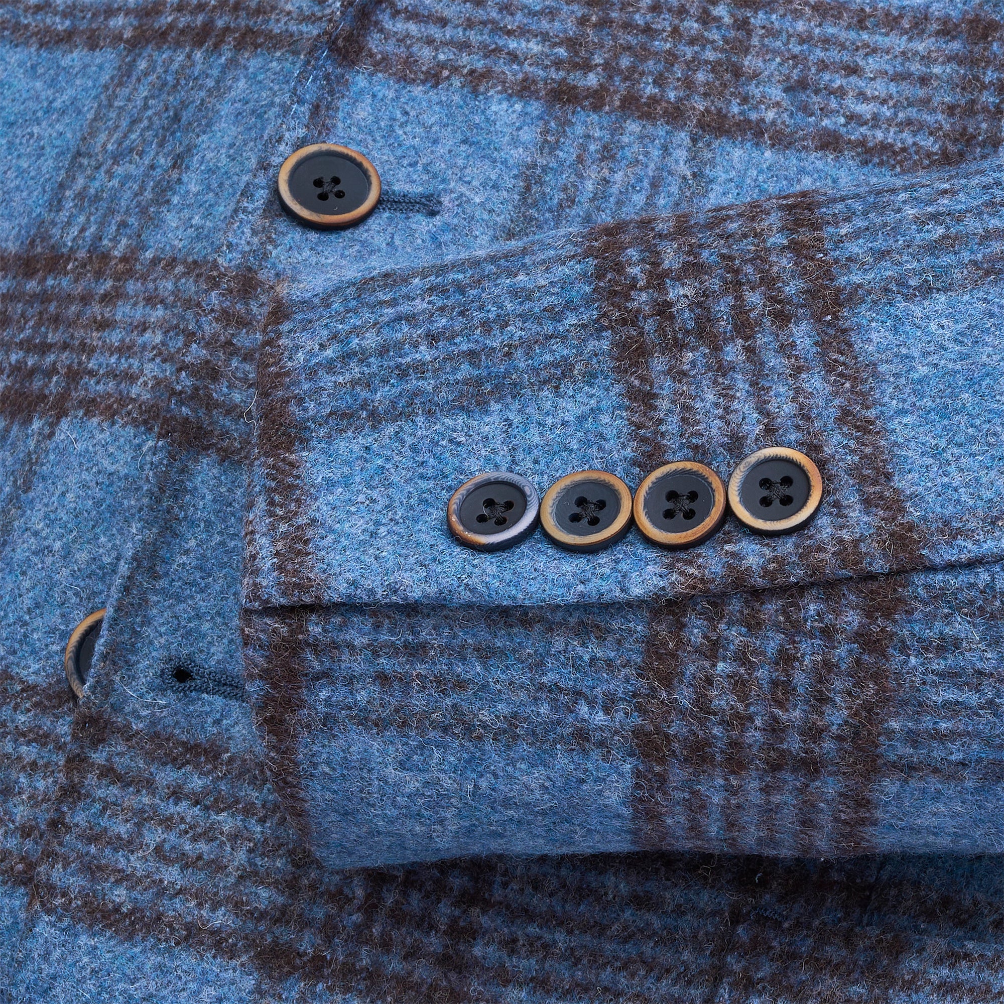 Made from a luxurious blend of baby alpaca, wool, and cashmere, the Blue Fog Plaid Sport Coat is exceptionally soft and lightweight. Baby alpaca is prized for its natural breathability and moisture-wicking properties, making this coat as comfortable as it is refined.Â
