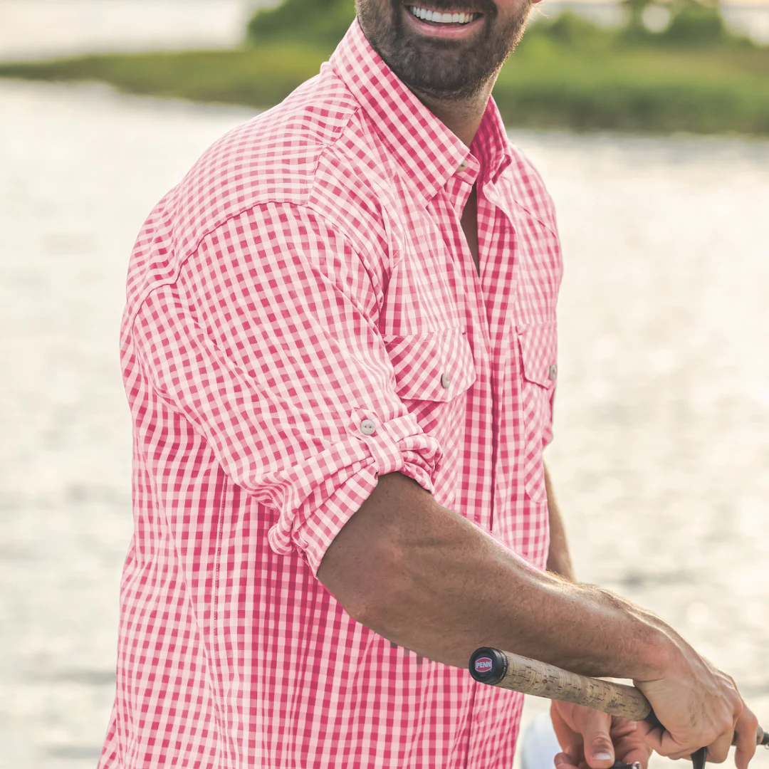 A dressy fishing shirt! Our Waterfront Performance Fishing Shirt is perfect for a lifestyle look for everyday wear. It has a performance fishing shirt look that can be worn for anything. It has roll-up sleeves and eyeglass cloth on the inside for when you need to wipe off your glasses from the beach or boat! The wears of this shirt are endless!