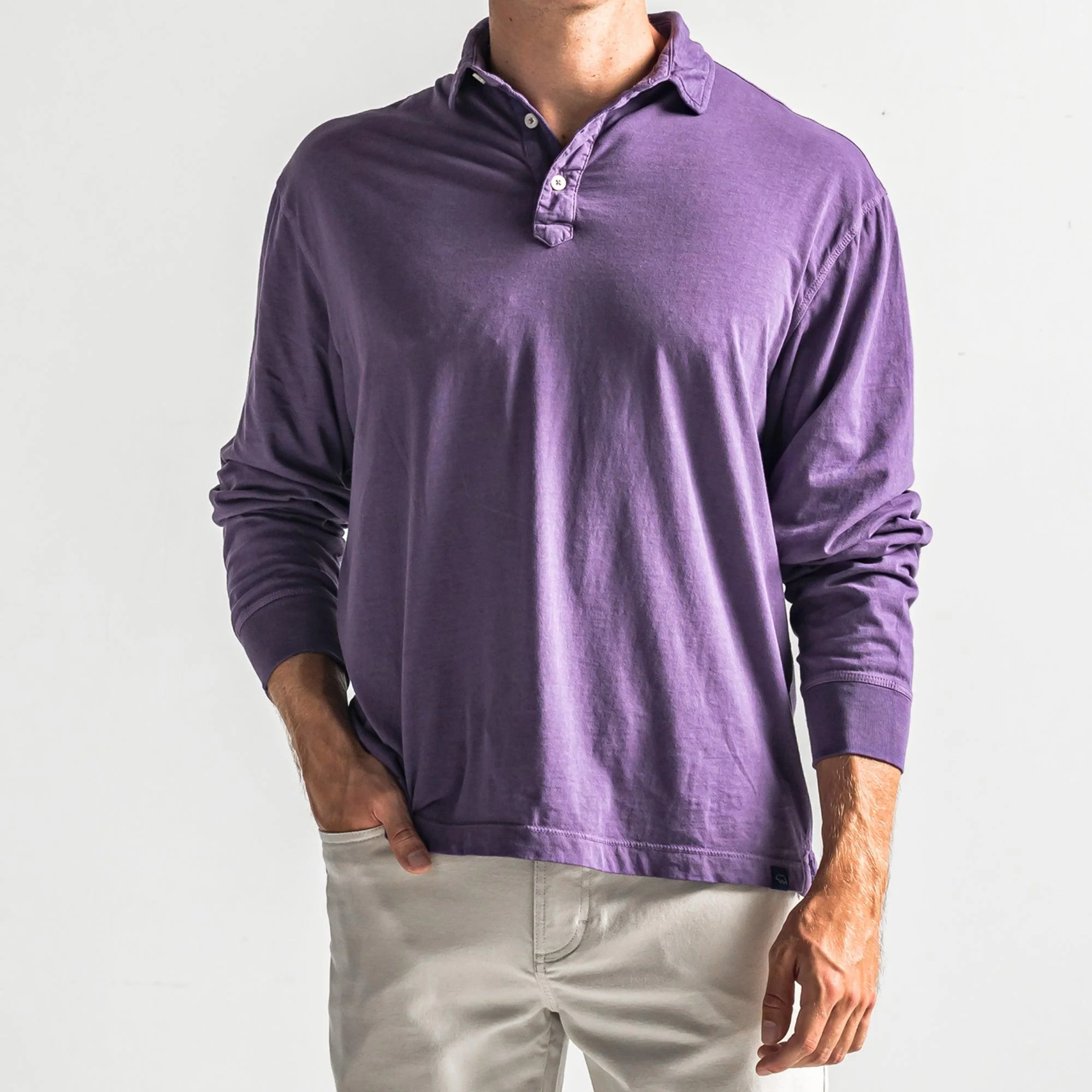 Our garment dyed, long sleeve Perry polo is unbelievably soft and versatile. Wear untucked on its own or under a sport coat!